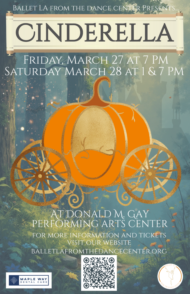 Ballet LA from The Dance Center is proud to announce an original full length dance production of “Cinderella” Spring of 2026 at Edward Little’s brand new auditorium, The Donald M. Gay Performing Arts Center in Auburn.